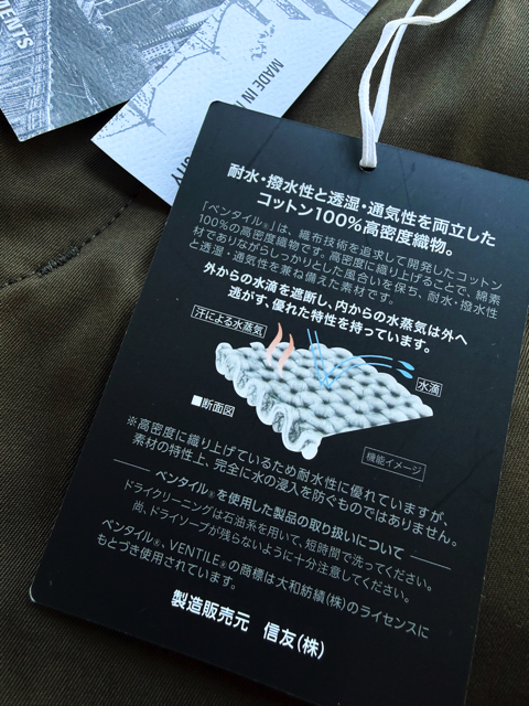 防水性の高いヴェンテイル素材を使用し、日常からアクティブなシーンにも対応します。