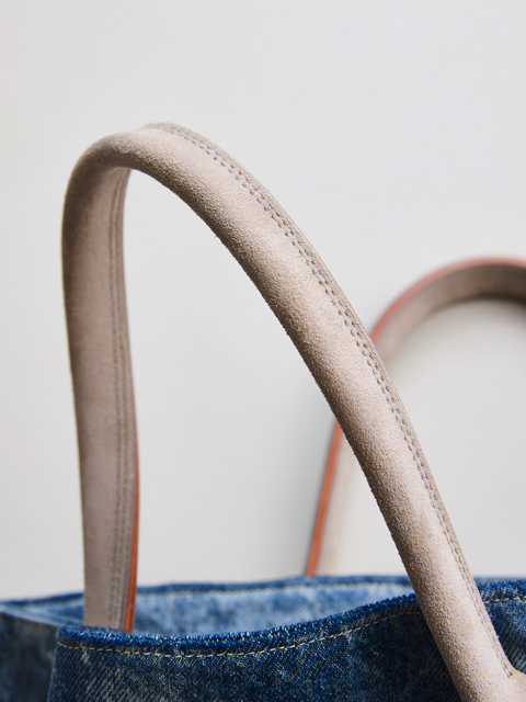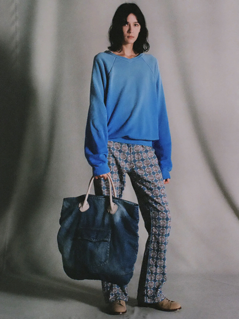 素材は13ozの右綾デニム⽣地を使⽤。