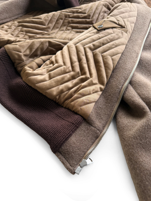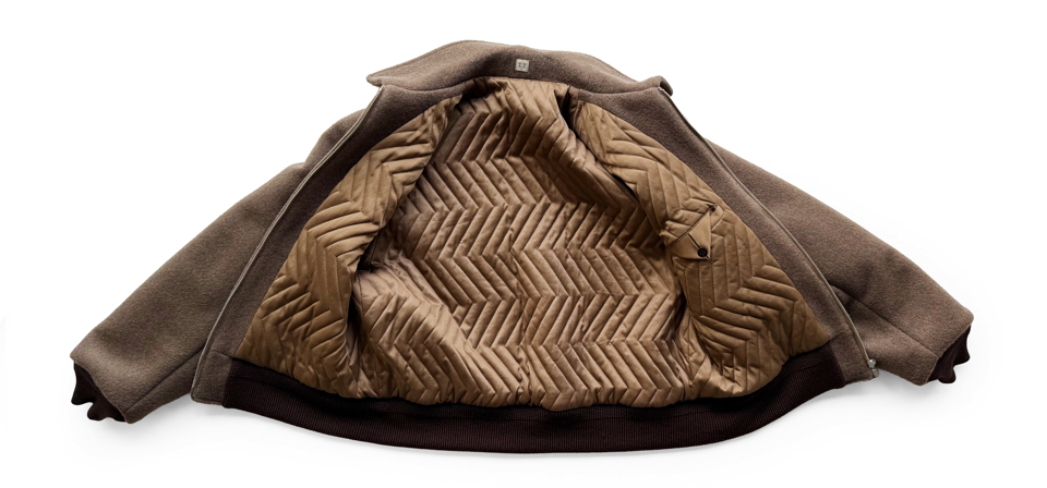 希少なヤクの毛を使用した二重織生地を使用し、ヤク本来のナチュラルな色合いを生かしている。