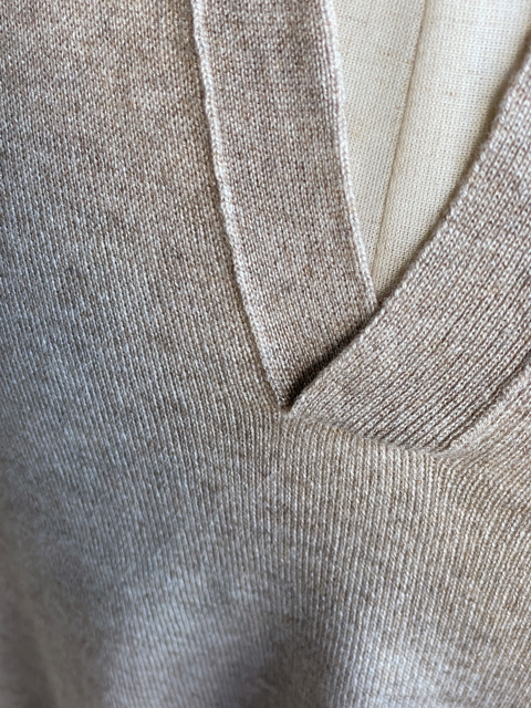 ウォッシャブルのシルクとカシミヤの混紡糸を使用したスキッパーニット。