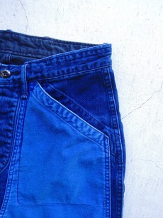 ・CANTON OVERALLS【キャントンオーバーオールズ】より、Indigo Black Satin + Indigo Moleskin Double Knee Work Trousers With Buttonのご紹介です。