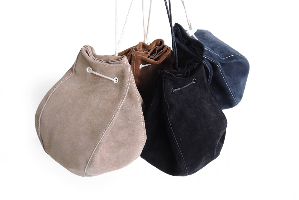 オイルをたっぷり含んだカウベロアを使用した巾着です。