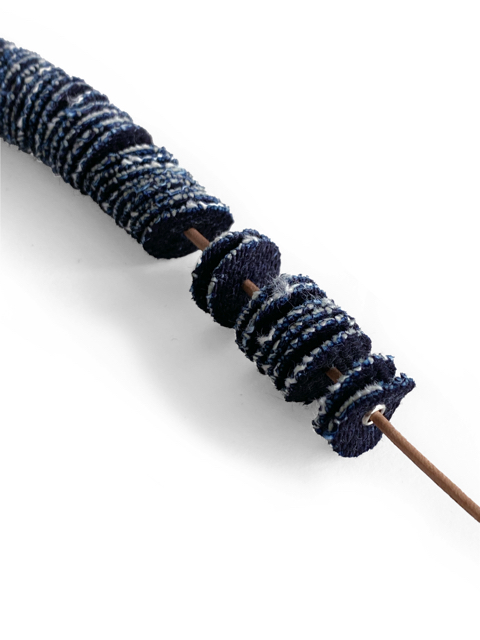 糸の硬さゆえに通常は製織が困難な22オンスの極厚デニム生地。