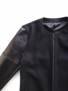 袖はWAXによりヴィンテージライクな風合いを表現した馬革を使用したノーカラースタジャン。
