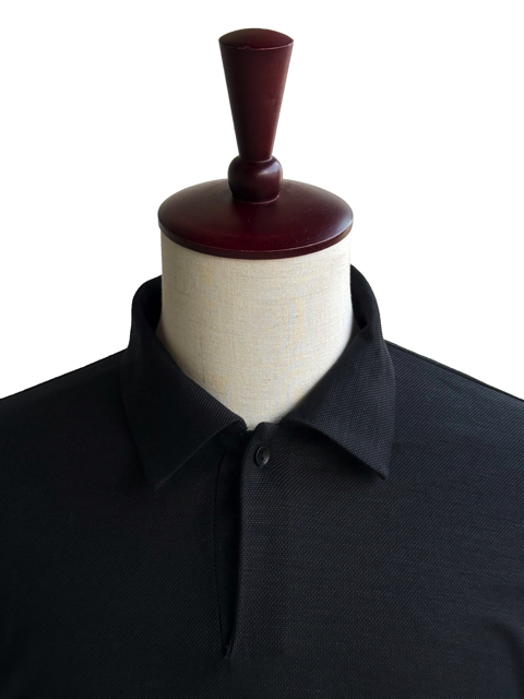 ラミー混素材のハリのある素材を使用した長袖のポロシャツを作成しました。