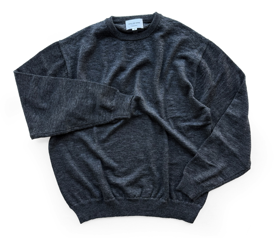 12ゲージで編んだクルーネックプルオーバー。