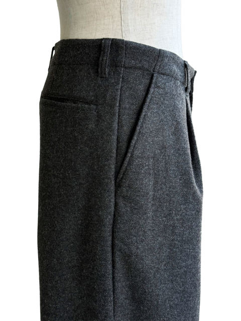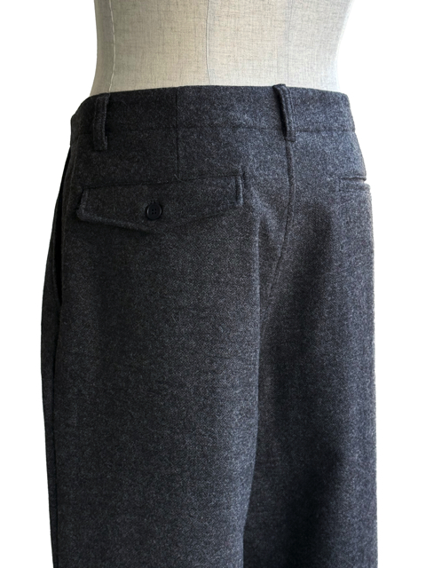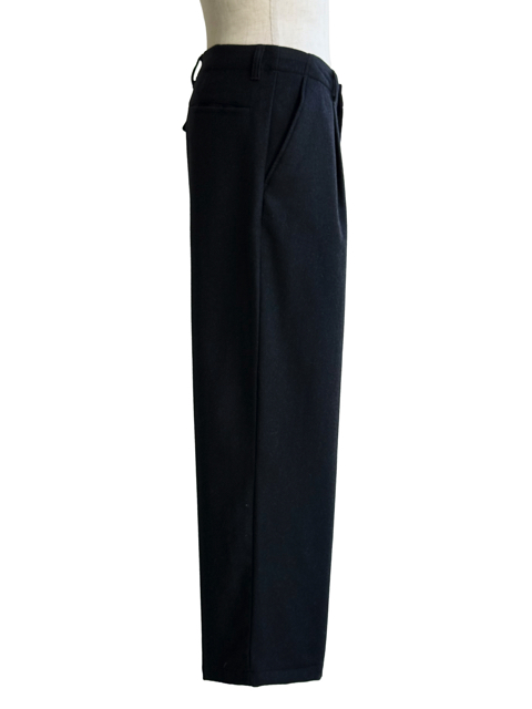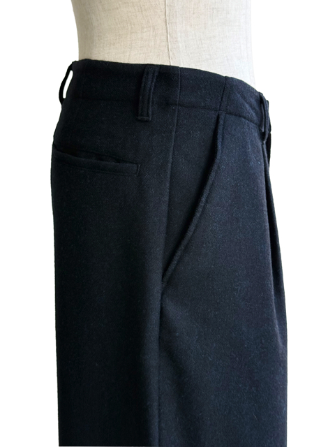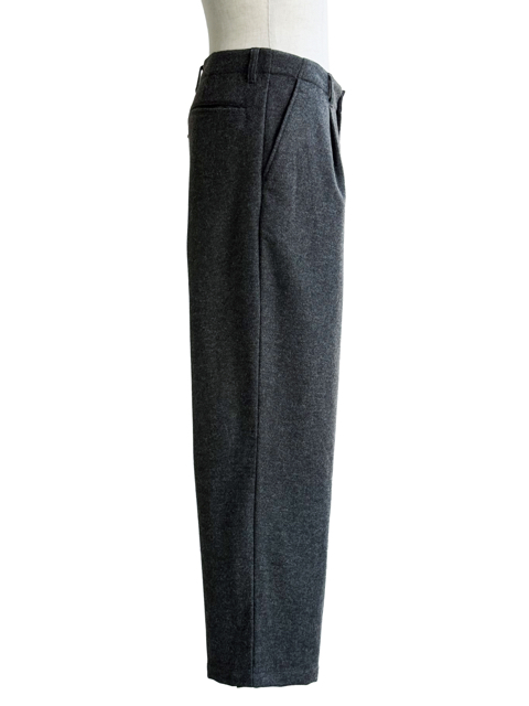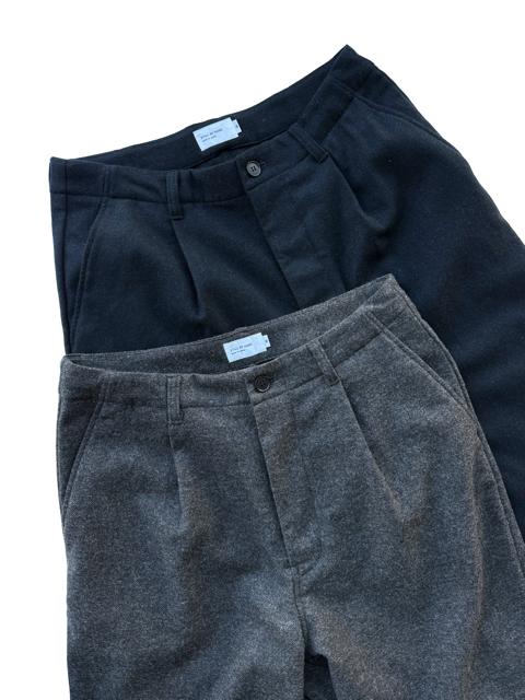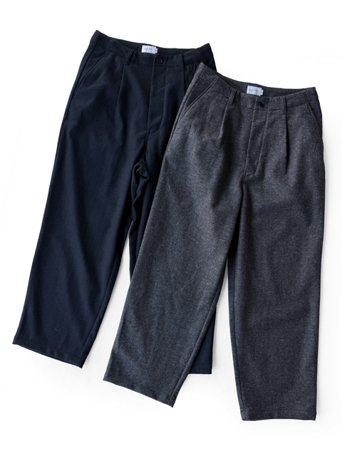シルエットはワイドでテーパードを緩やかにし、ストンとしたラインとなります。