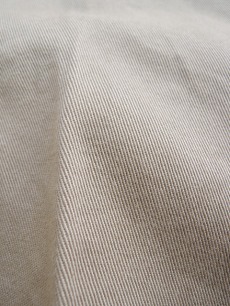 メインファブリック: 超長綿(ルアンチン)の甘撚り原糸を原綿に使用し、高密度に織り上げたチノ / 綿 100%