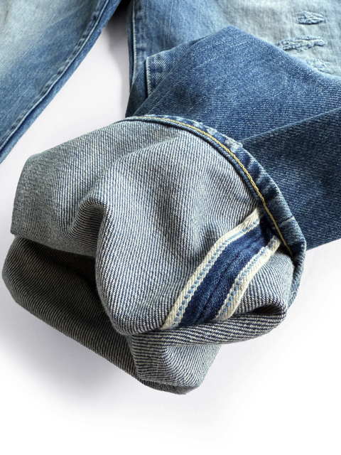 従来の13.5〜14oz青耳から新しく開発されたデニムです。