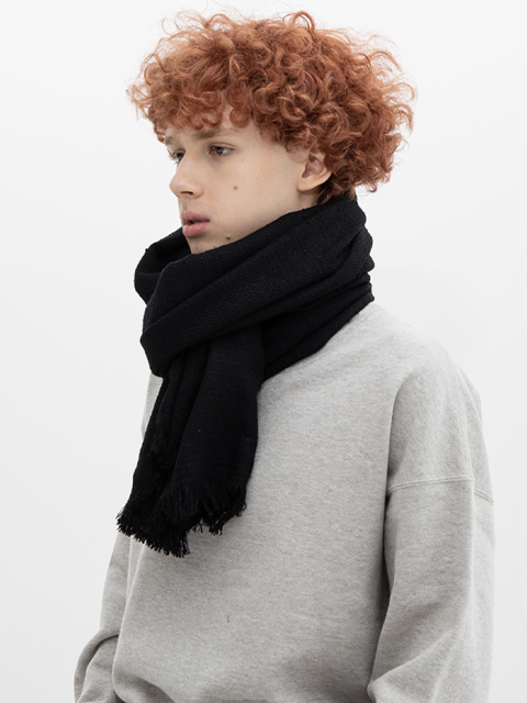 柞蚕大條糸で織り上げたツイード生地を使用したストール。
