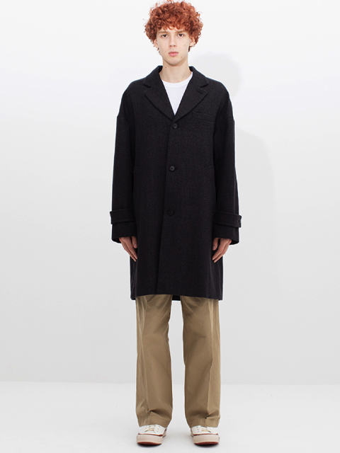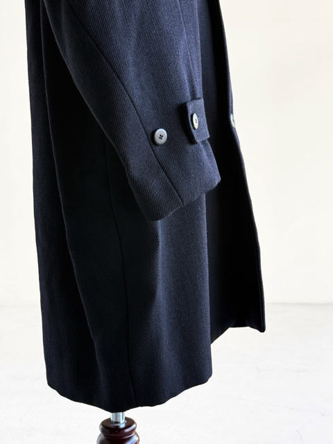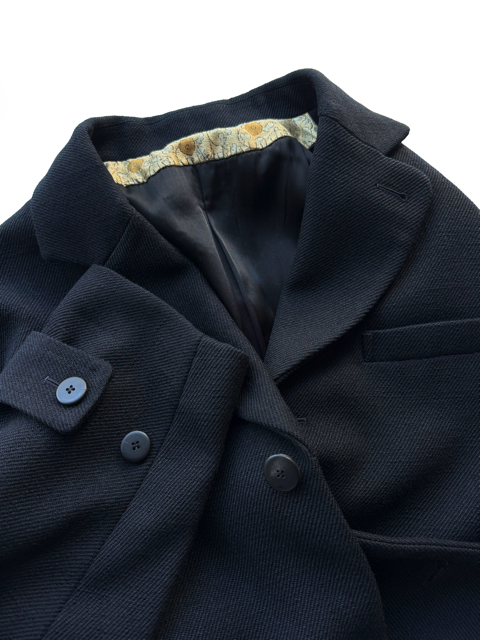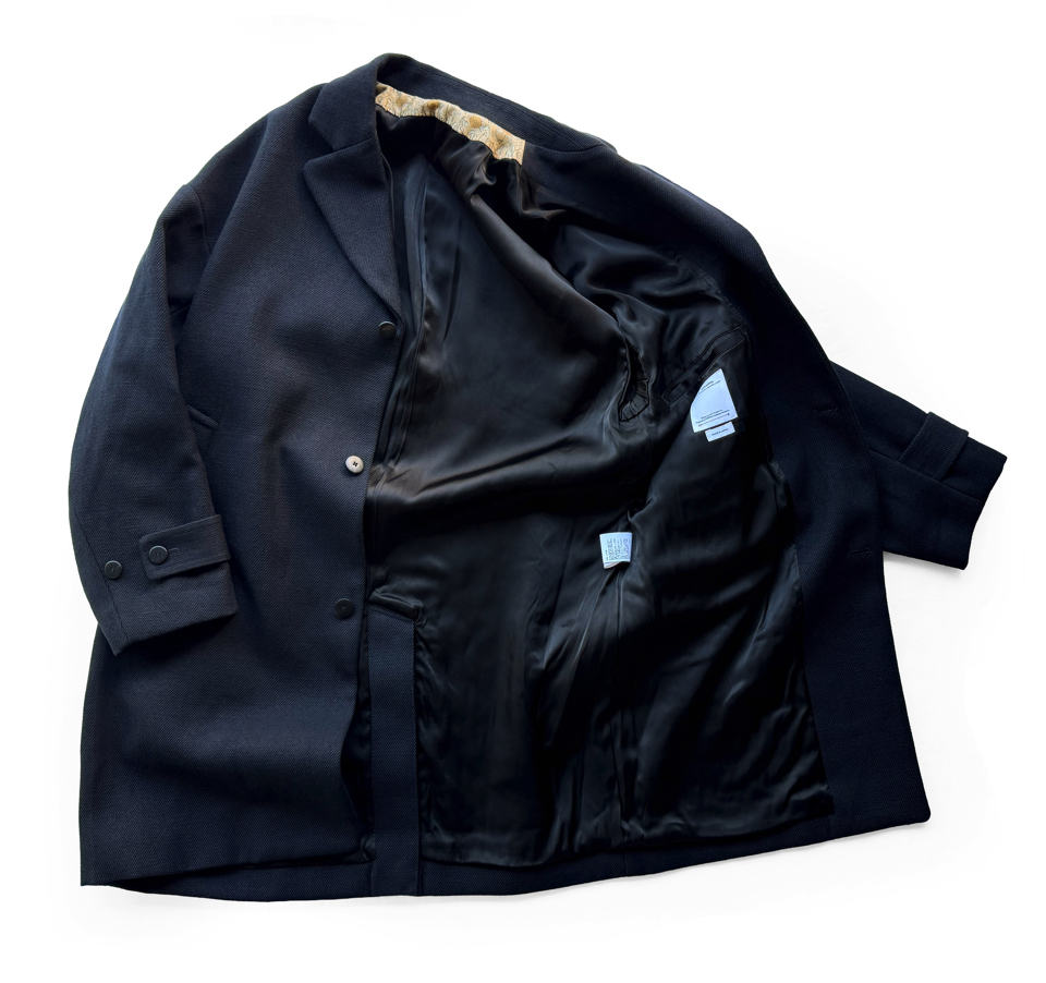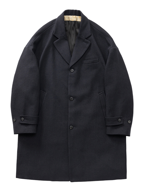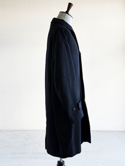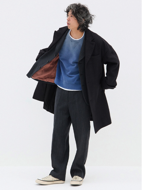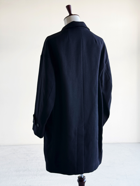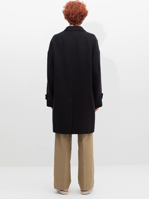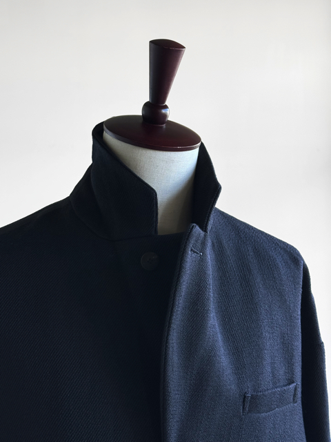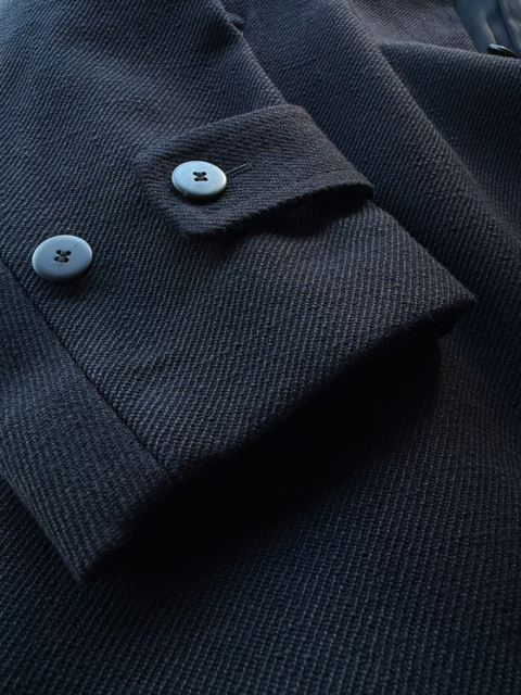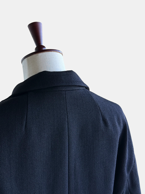 毛、麻で織り上げたツイル生地を使用したコート プレス仕上げ