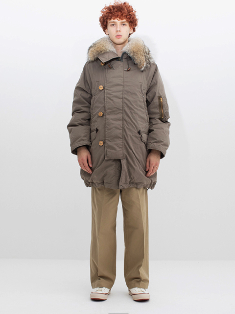 特殊な加工を施した綿とナイロンを使用したダウンコート
