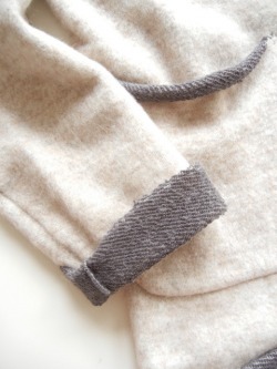 ・裾と袖は断ち切り仕様で、裏面の配色がちらりと見えるのがポイントです。