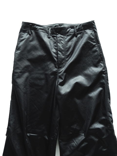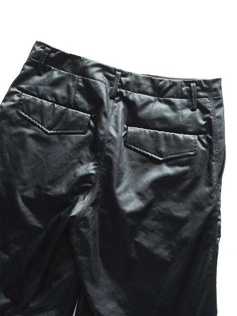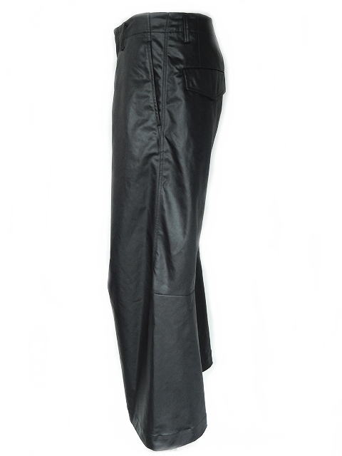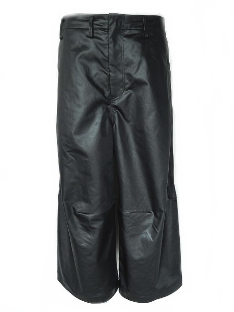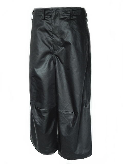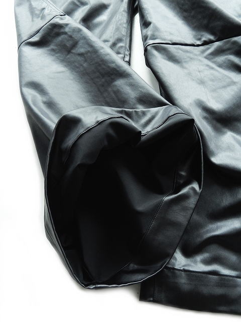 ヴィンテージレザーのような質感が印象的なワイドパンツ。