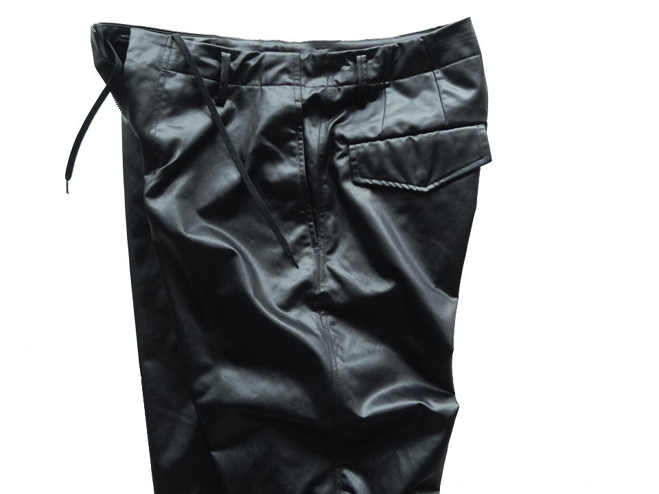ゆとりのある分量感をベースに、膝位置にダーツを入れることで構築的なフォルムを生み出します。