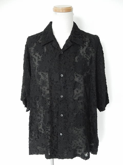 透け感と繊細な花柄が特徴的なオープンカラーシャツ。