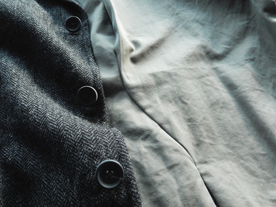 製品に洗いをかけてシワを残したラフな仕上げだが、テーラードジャケットとしての構築はしっかりさせ、