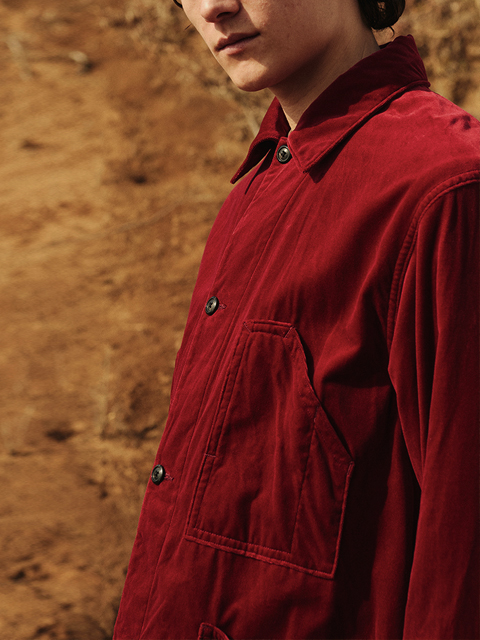 クラシックなワークジャケットにblurhmsならではの上質な素材使いと洗練されたシルエットを融合させた一着。