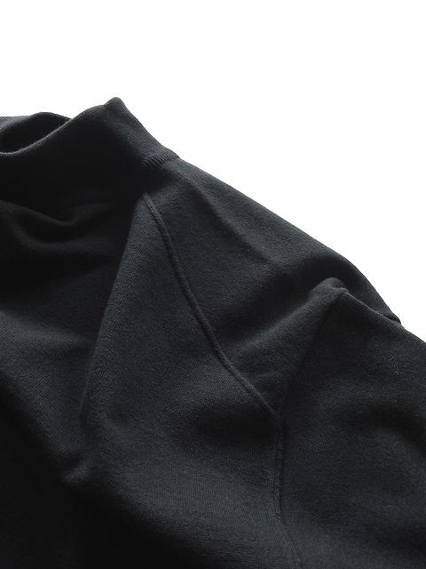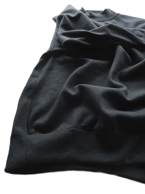とてもゆったりしたモックネックを、度詰め感のある柔らかいウールニットで製作。