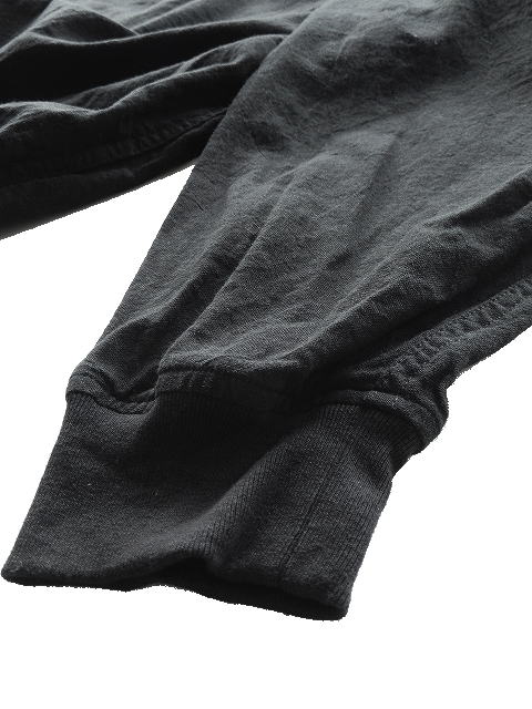製品染めでブラックの上から更にブラックを乗せて風合いのある質感になっています。