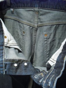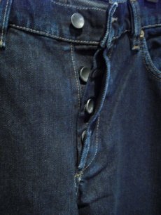 ・ヴィンテージ加工を施し、最終工程にブラックの染料を加え、独特の濃いインディゴ&ブラックの色味を作りあげています。