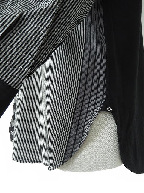 複数の異なるストライプのパターンを組み合わせた生地を使用しておりユニークな印象に仕上がっています。