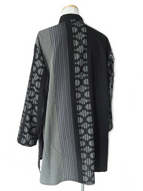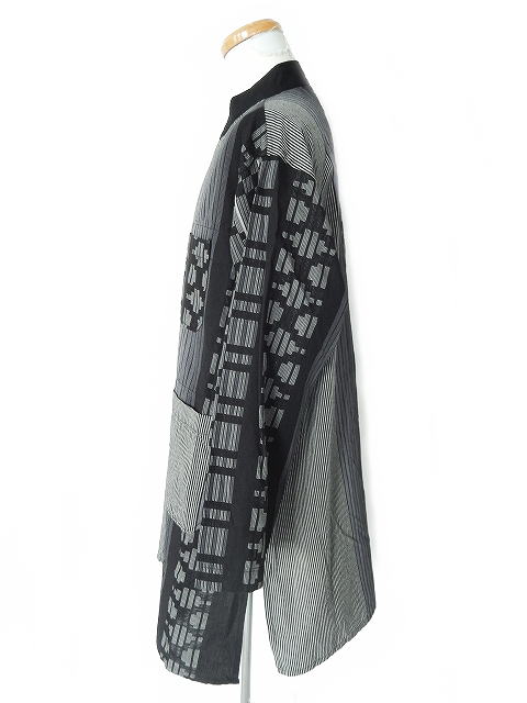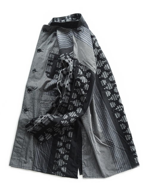 幾何学柄のプリントが施された生地を使用し個性的な印象の一着です。