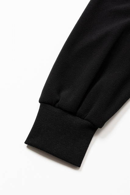 フロントジップはネック部分まで立ち上がり、従来のカンガルーポケットに加え、