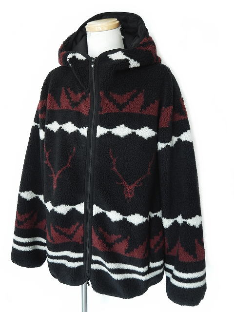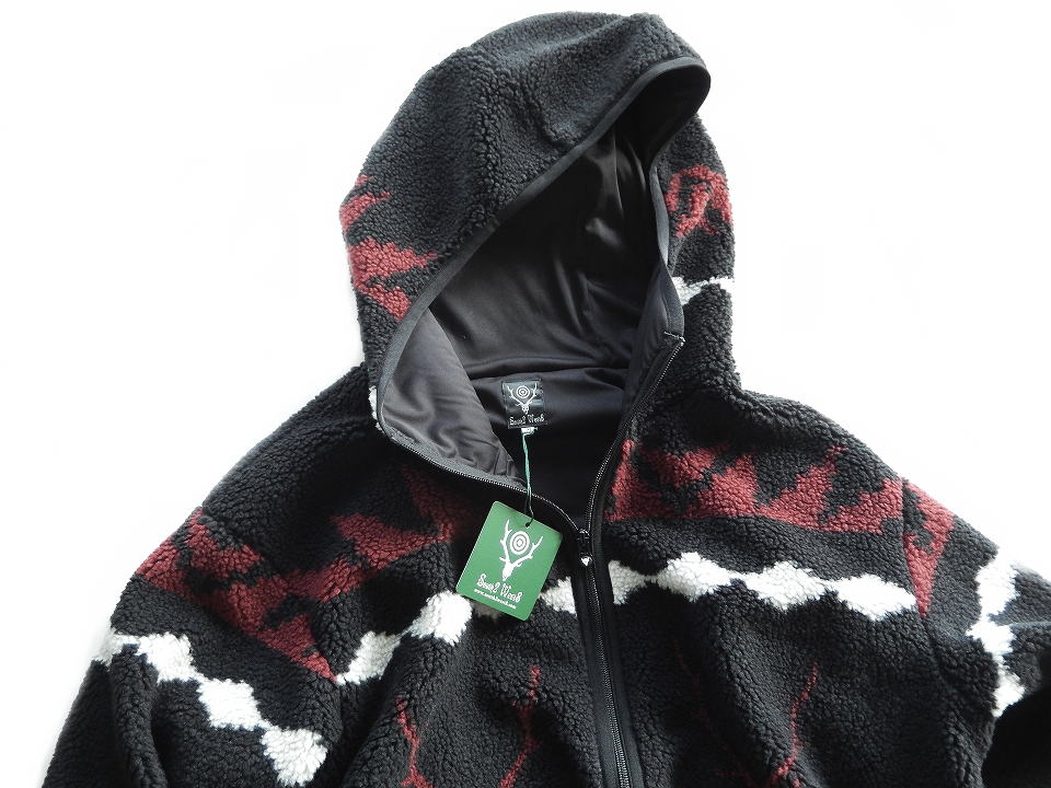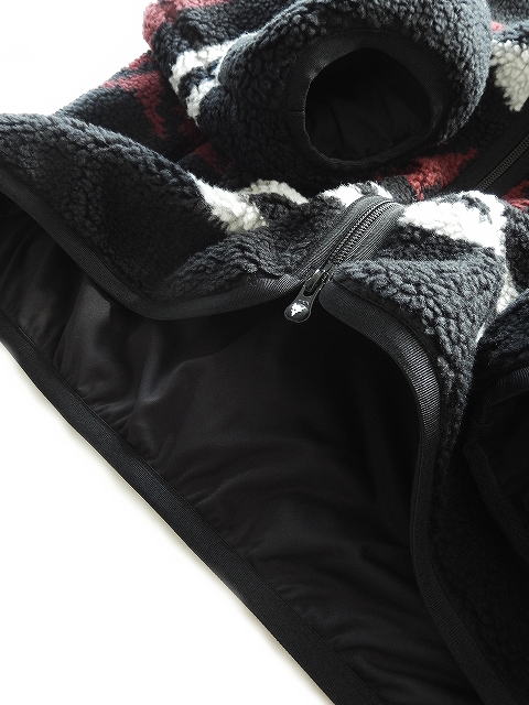 滑らかな手触りのポリエステルボア素材を使用したジップアップパーカ。