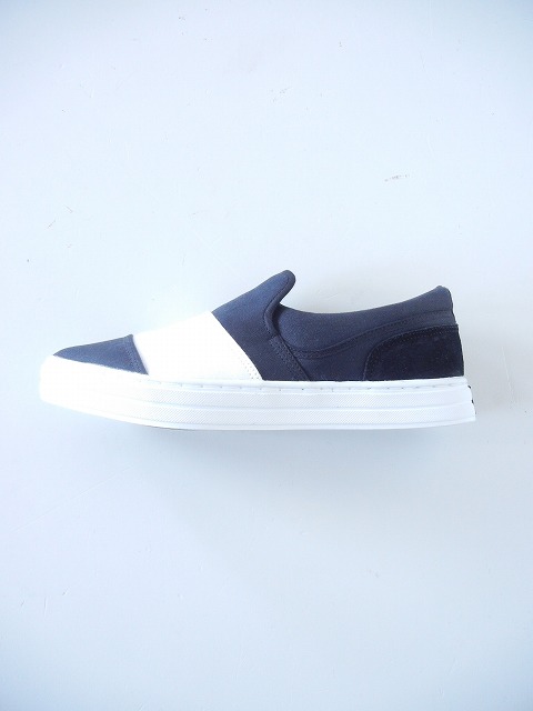 ・今季の代表的な素材を使用した、スリッポンです。カラー/Blackには硫化起毛チノと岡山県産デニムの切り替え素材を使用し、