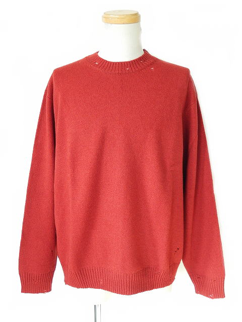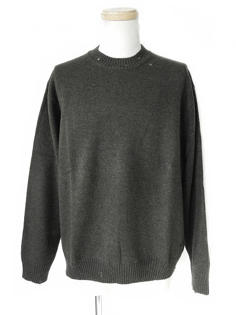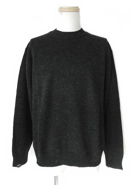シェットランドウールを使用したダメージライクプルオーバーニット。
