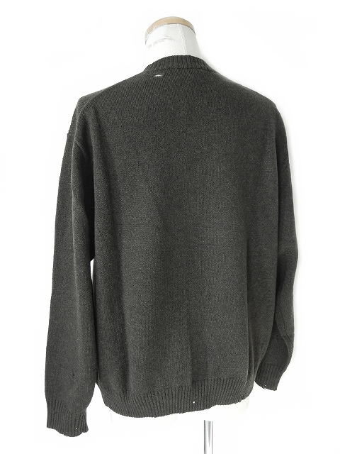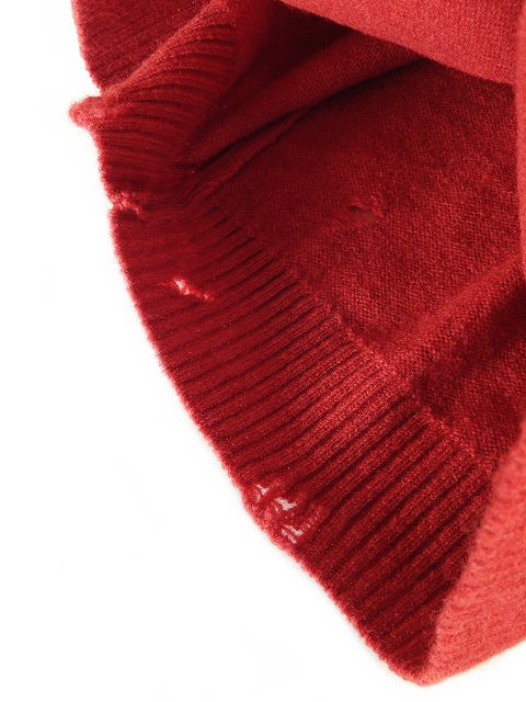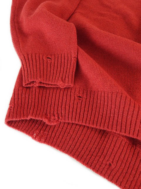 ダメージ加工ではなく編みの段階で糸を飛ばすテクニックが使われています。