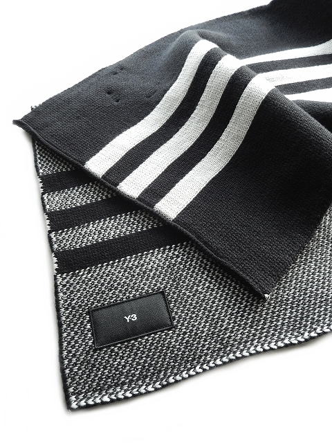 暖かく快適なアクリルニットを使用した「Y-3 STRP SCARF」。