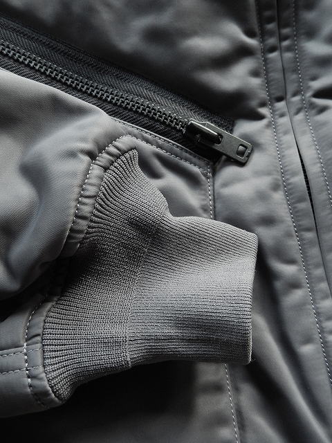 わずかに光沢のあるナイロン素材を使用し、オーバーサイズに仕上げたジャケット。
