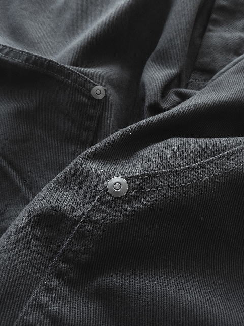 ウエストはドローコード+ゴム付きで、履きやすく、ダブルニーのディテールが入り、ややスッキリとしたシルエットです。