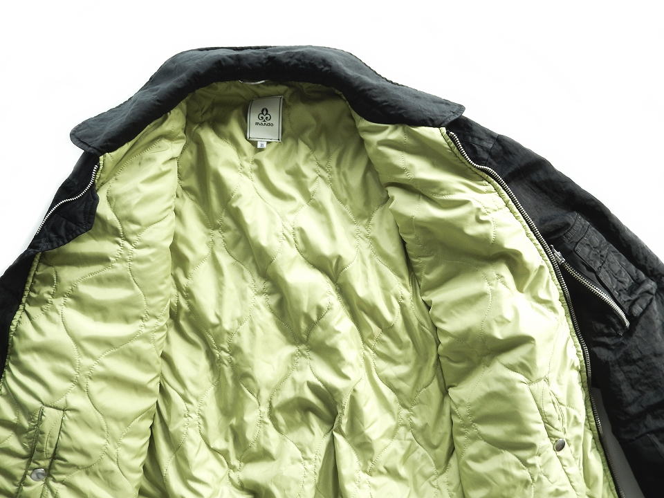 表地には高密度ナイロン、裏地にはオニオンステッチが施されたキルト仕立てになっています。