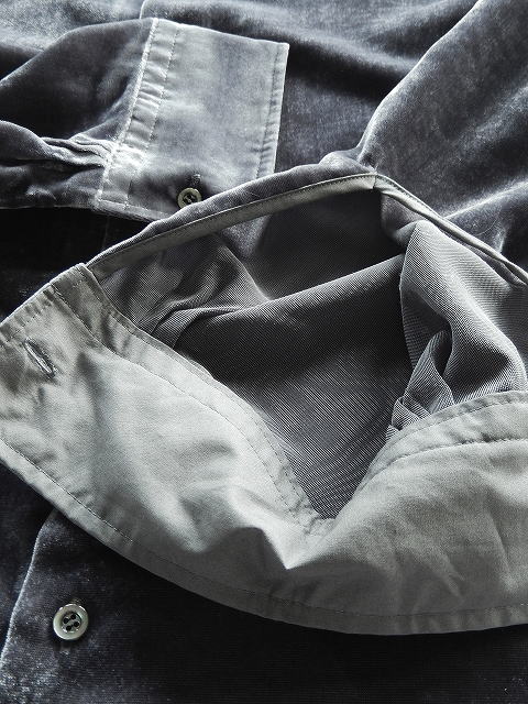 シャンブレー感のある色合いが特徴のベルベット素材のシャツ。
