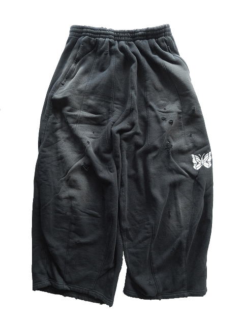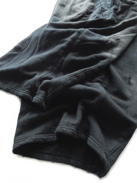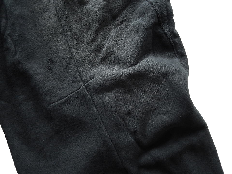 ヴィンテージスウェットのようなリアルなダメージや色褪せの加工が施されたスウェットパンツを