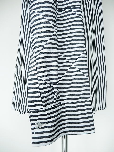 目を凝らしてストライプを追いたくなるような、目を惹く一着。