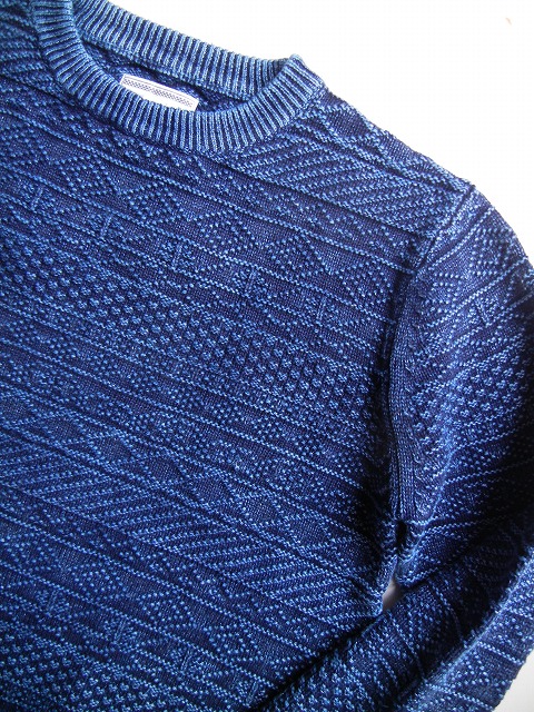 インディゴ染めを施したコットンサマーニット。洗いなど加工を加えているため、柔らかく、着心地の良い仕上がりです。