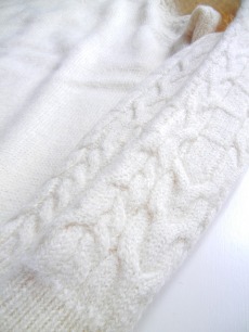 ・前身頃は天竺編み、袖、後身頃はクレイジーケーブル編にて仕上げております。