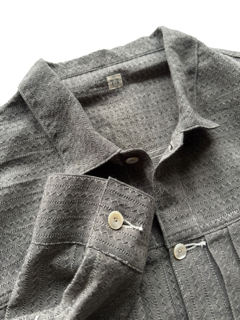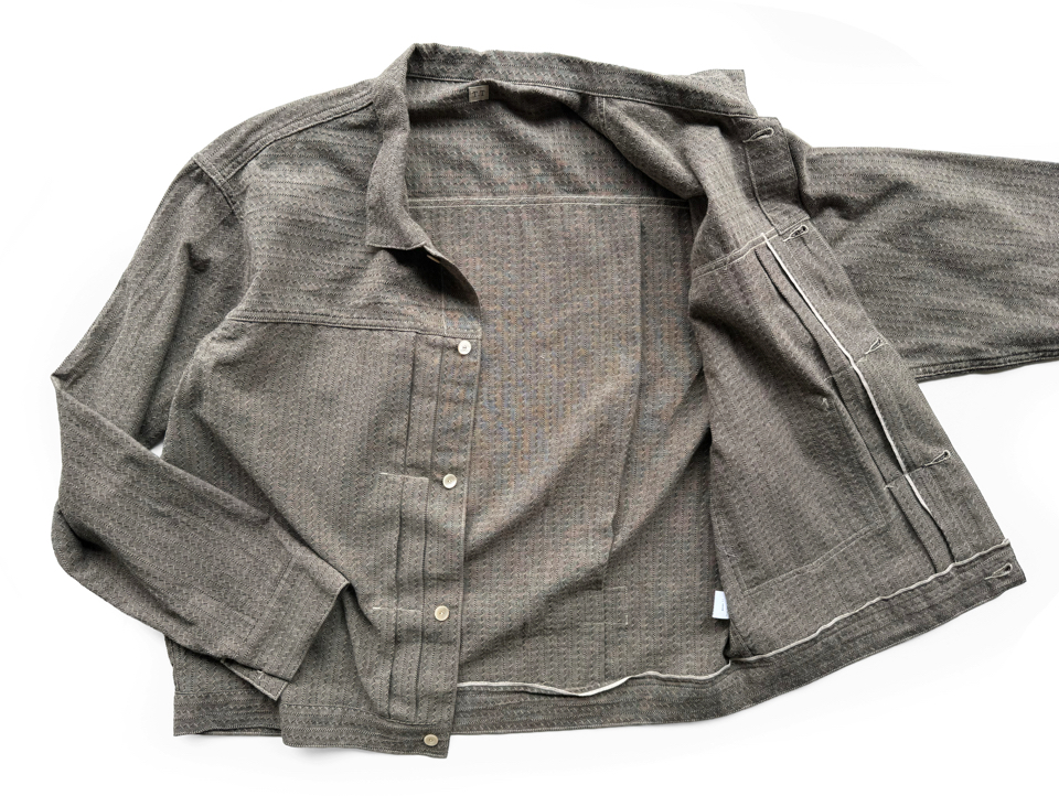 貝ボタンを用いてシャツとしても着られるようにデザインしたジャケットである。