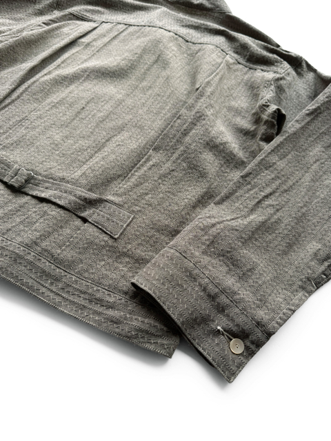 このジャケットは片方のみにパッチポケットが付いており、前見頃にあるプリーツを