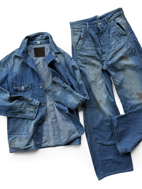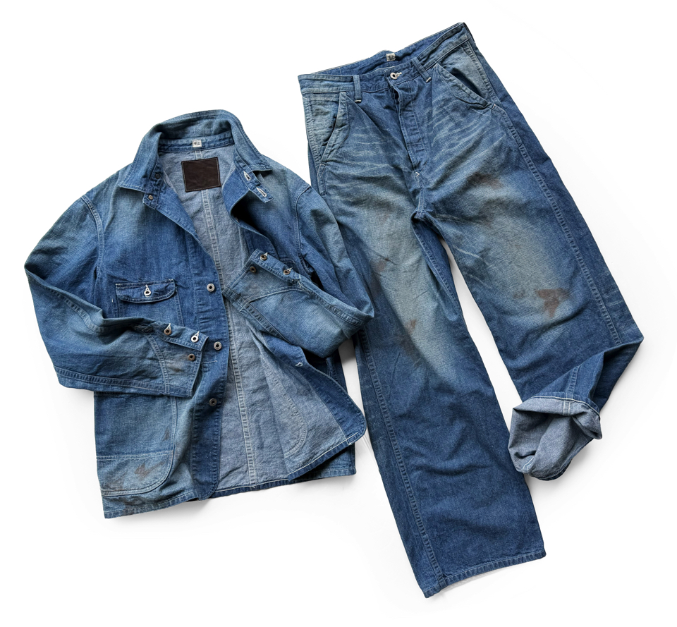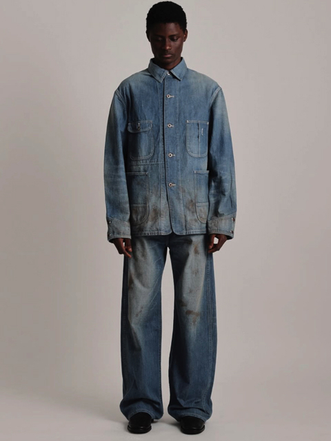 ワークウェア特有の土汚れ、オイル汚れも踏襲しリアルなダメージ加工に仕上げた。