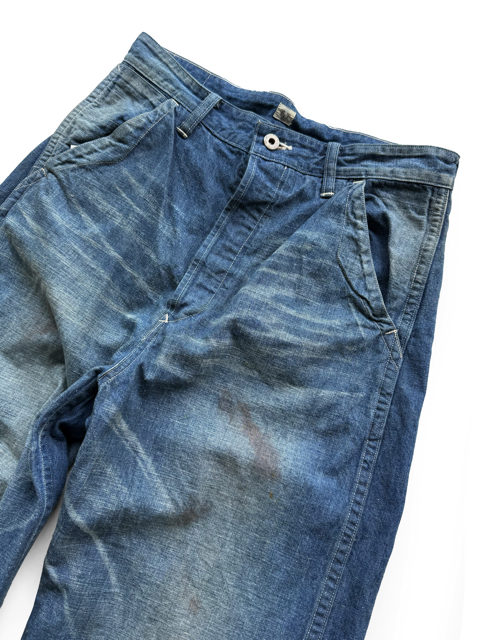 ワークウェア特有の土汚れ、オイル汚れも踏襲しリアルなダメージ加工に仕上げた。