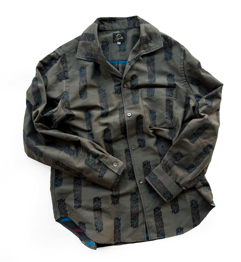 独特の襟型に涼し気な首周りのデザインがユニークな開襟シャツ。